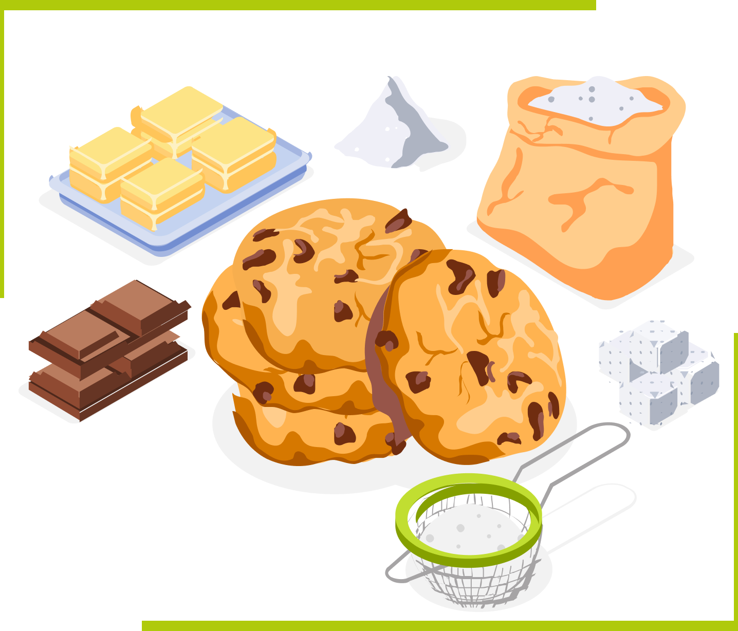 - Խմորեղեն (կրուասաններ, թխվածքաբլիթներ, կեքսեր, բլիթներ, ռուլետներ, տորթեր, նրբաբլիթներ և այլն)