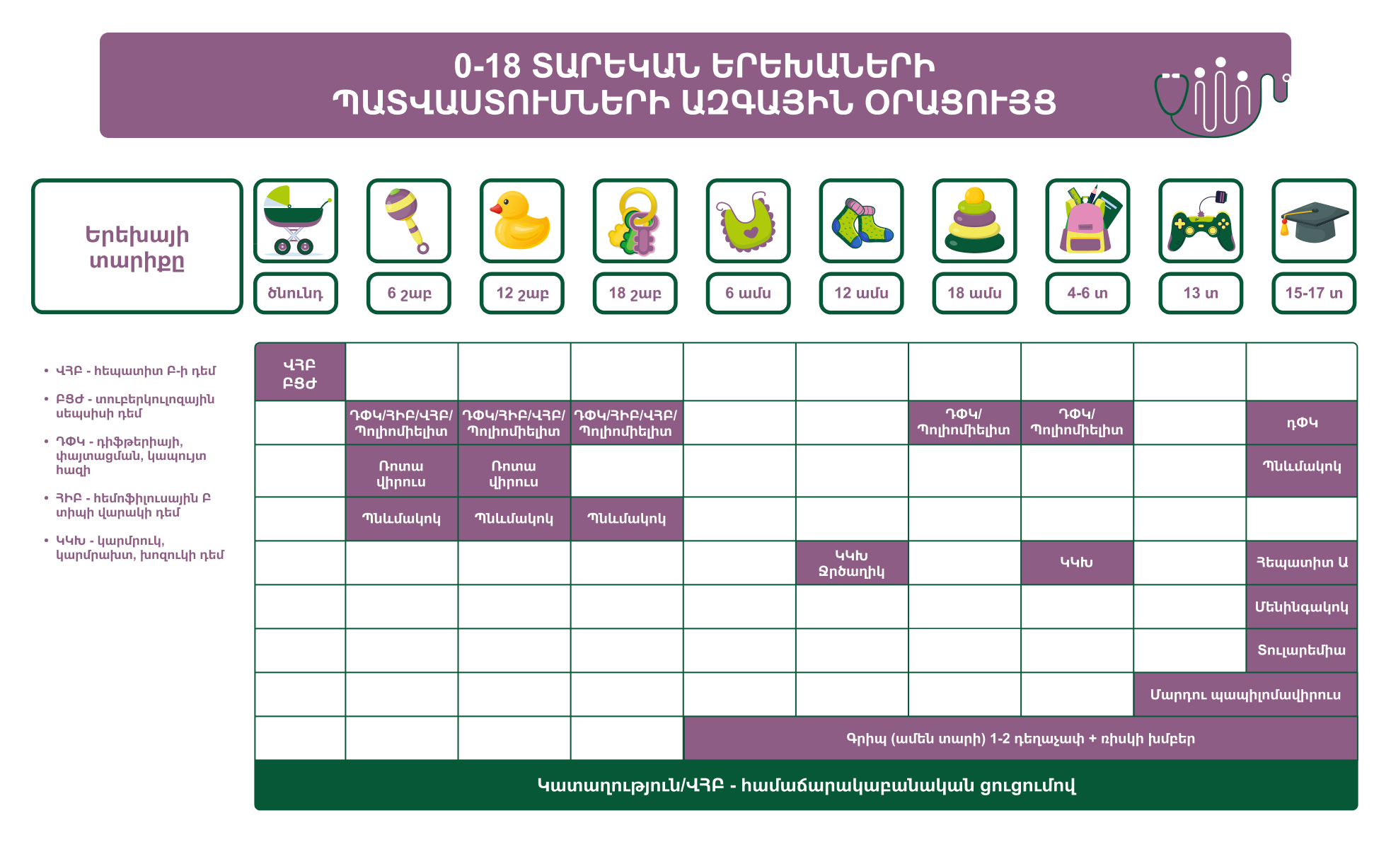 At the "Wigmore Family Health Center", you can receive all vaccinations included in Armenia’s national immunization schedule against the following diseases: