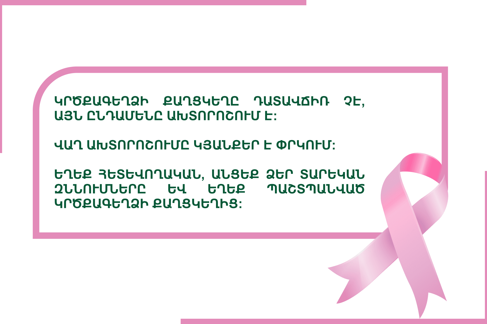 Հոկտեմբերն աշխարհում կրծքագեղձի քաղցկեղի իրազեկման ամիսն է։