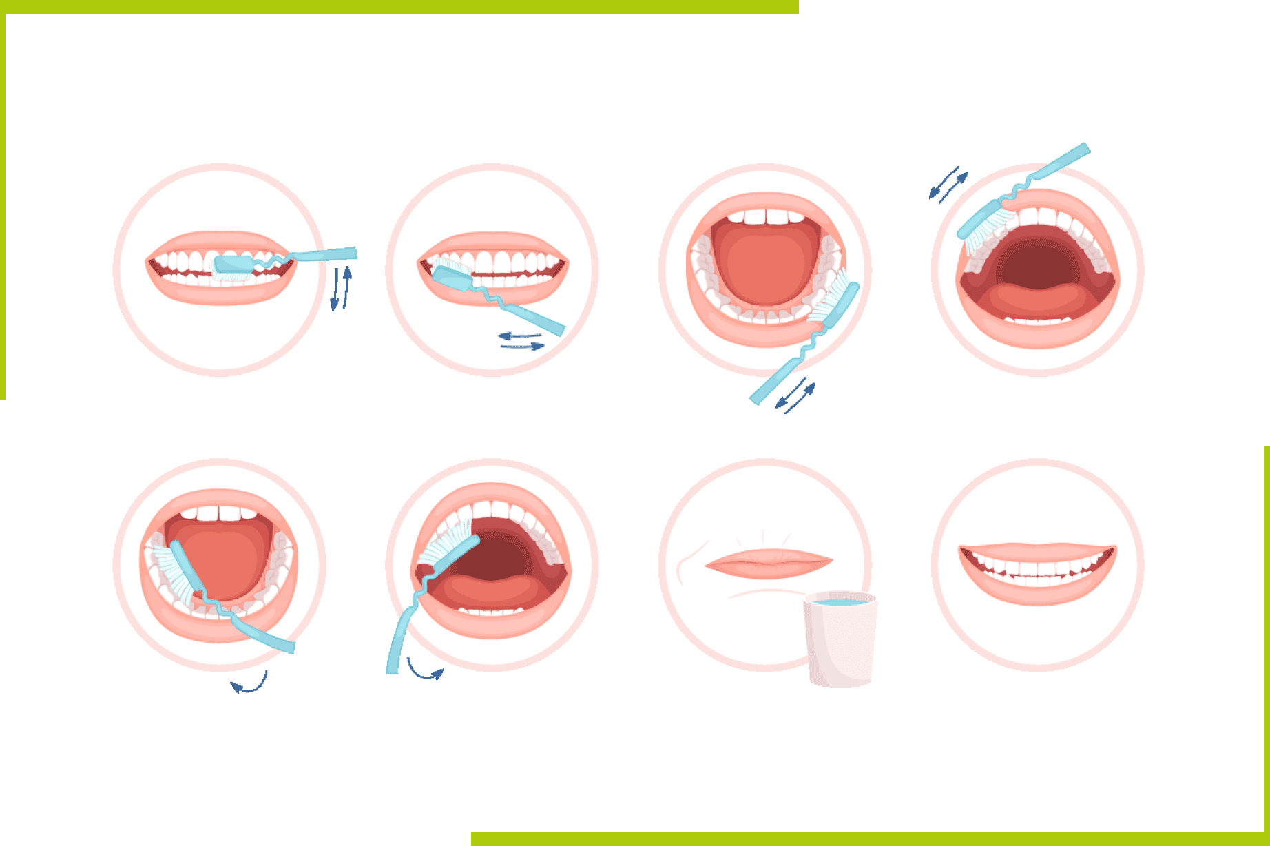 •  Խոզանակը պետք է շարժել լնդից դեպի կտրող եզր ուղղությամբ՝ հանդարտ շարժումներով։