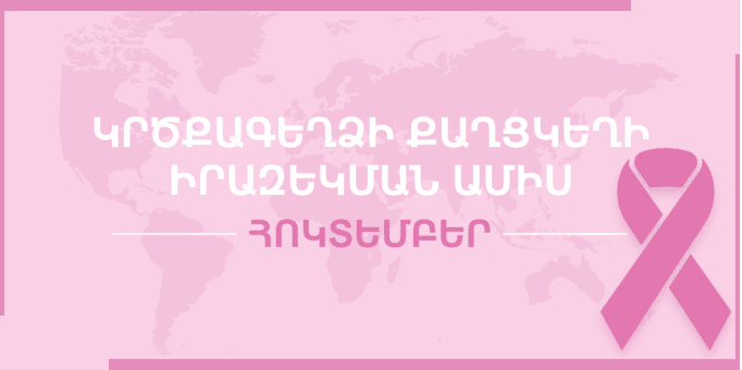 Հոկտեմբերն ամբողջ աշխարհում նշվում է որպես կրծքագեղձի քաղցկեղի իրազեկման ամիս։ Սա ժամանակ է խոսելու կանանց առողջության, վաղ ախտորոշման և հիվանդության կանխարգելման մասին և խրախուսել հոգ տանել սեփական առողջության մասին, ոչ թե մինչև․․․ այլ հենց հիմա՛։ Հարյուրավոր երկրներում բարձրաձայնում են պարզ և կարևոր ճշմարտություն. կրծքագեղձի քաղցկեղը բուժելու հավանականությունը շատ բարձր է, եթե այն հայտնաբերվի ժամանակին։ Հայաստանում այս հարցերը դեռ հնչում են առավել հուզական ու հրատապ․․․